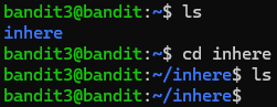 그러므로, ./inhere 디렉터리로 옮기고 ls로 디렉터리 내부의 파일들을 확인해 봤지만 아무것도 나오지 않는다.