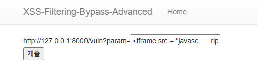 페이로드에 필터 문자열이 하나라도 포함된다면 “filtered!!!” 문자열을 반환하여 공격을 성공시킬 수 없다. 그런데 필터 문자열 중 자바스크립트를 실행한다고 선언하는 문자열들이 포함되어 있으므로 자바스크립트를 실행시킬 방법부터 찾아야 한다.