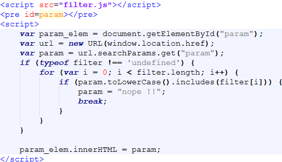 이번 문제의 핵심 코드를 보면 XSS에 대한 필터 역할을 하는 자바스크립트 파일이 상대 경로로 로드하게 되어 있다.