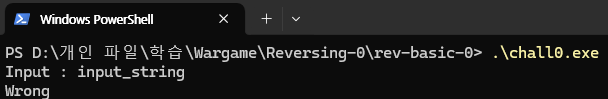 주어진 PE 파일을 실행하면 문자열을 입력 받는다. 입력받은 문자열을 내부에 저장된 문자열과 비교하여 true이면 “Correct”를, false이면 “Wrong”를 출력한다. 그리고 내부에 저장된 문자열이 이번 문제의 플래그가 되겠다.
