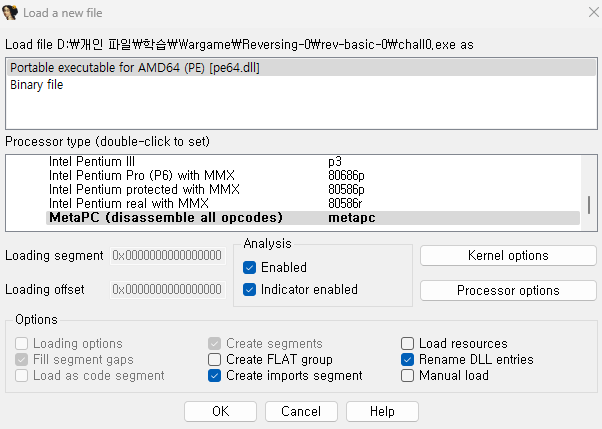 IDA로 해당 PE 파일을 뜯어보면 AMD64 체계의 PE 파일인 것을 알 수 있다.