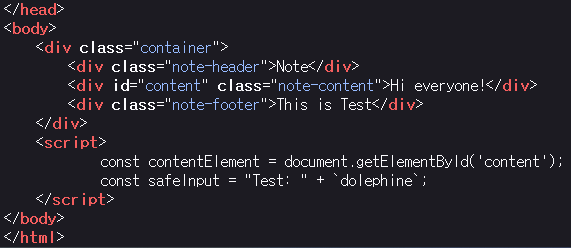 http://host8.dreamhack.games:21728/test?text=dolephine 이렇게 입력을 하게 되면 아래의 소스 코드처럼 “dolephine” 문자가 들어가게 된다.