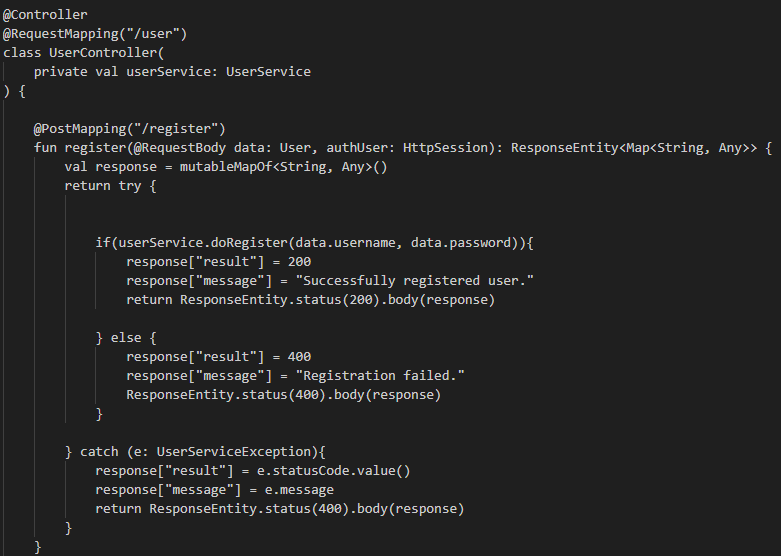 위 코드를 보고 /user/register에서 계정을 생성할 수 있다는 것을 알 수 있다. 그런데 POST 방식을 사용하므로 curl을 이용해 계정을 생성해보도록 하겠다.