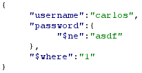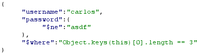 {"username":"carlos","password":{"$ne":"asdf"}}